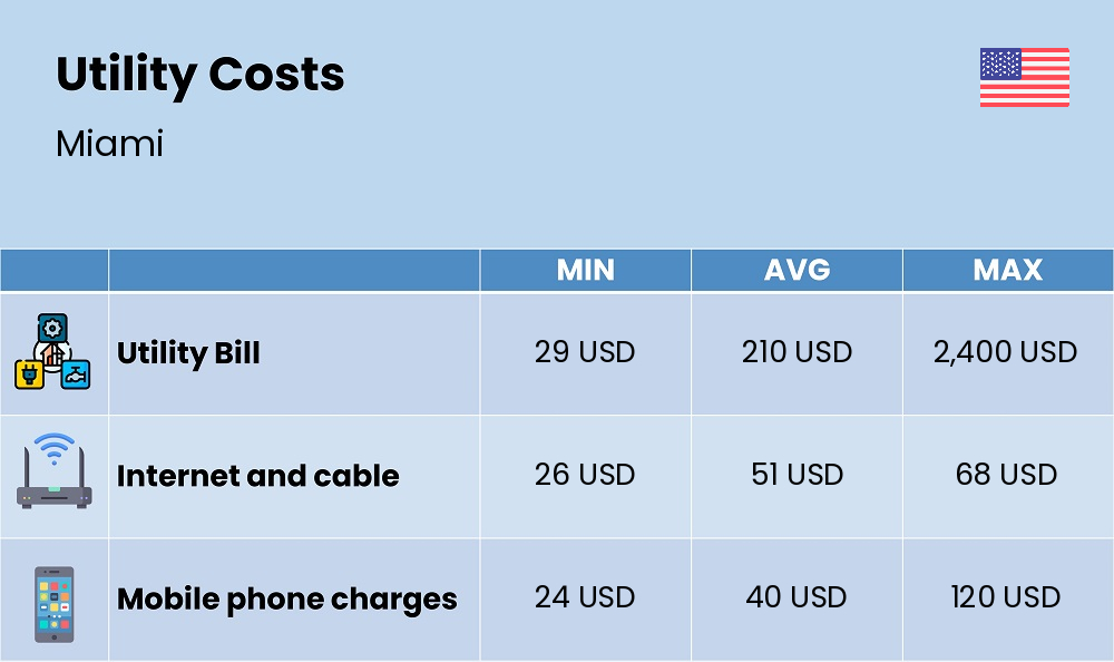 Energy, electricity, water, gas, internet, and mobile cost in Miami