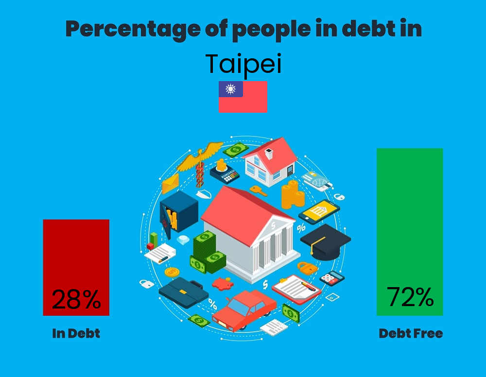According to our data, 3% of the debtors in Taipei pay 60%+ of their income as debt settlement while 15% of the people pay 50% to 60% of their income for the same, which is quite an alarming financial situation for those individuals. 13% of people in debt dedicate 40% to 50% of their income to loan and mortgage payments while 15% dedicated 30% to 40% of income for same. Things are looking brighter for 12% of individuals as they only pay 20% to 30% of their income for loan and credit card repayment.